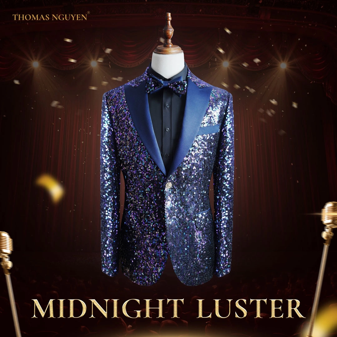 Bộ vest ánh kim Midnight Luster thuộc BST Luminous gây ấn tượng với màu xanh lam đậm nổi bật cùng hoạ tiết rực rỡ của lớp sequin, midnight luster như tượng trưng cho hình ảnh bầu trời đêm đầy sao. Midnight Luster, hứa hẹn tạo nên một “cú bật” trong phong cách thời trang của các quý ông. Không chỉ bởi diện mạo lấp lánh, mà còn bởi khí chất tự tin và đẳng cấp khó hòa lẫn.